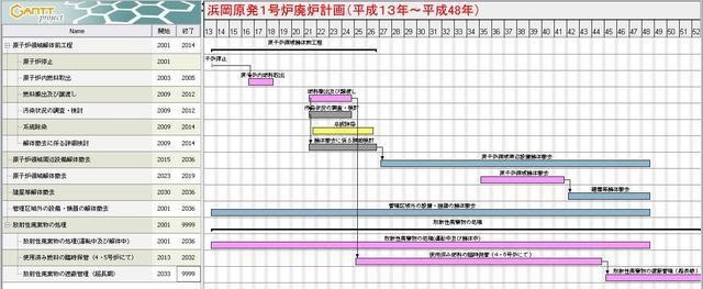 (濱岡核電站一號機組的廢爐計劃時間表,預(yù)計于2036年完成)