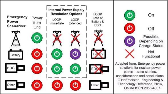 與柴油發電機相比,新電池技術可能具有優勢,應進行試驗和量化。如果證明其優越性,則應在現有和未來的核電廠中使用。