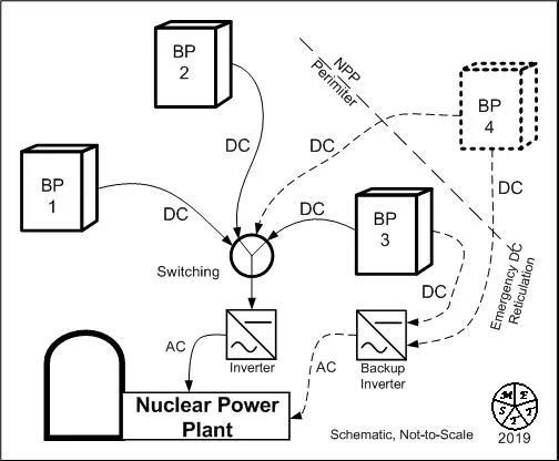 當前的備用系統(有限的電池供應,連接回電網和現場柴油發電)提供完全可調度和可變的供應,以滿足反應堆和輔助服務的需求。