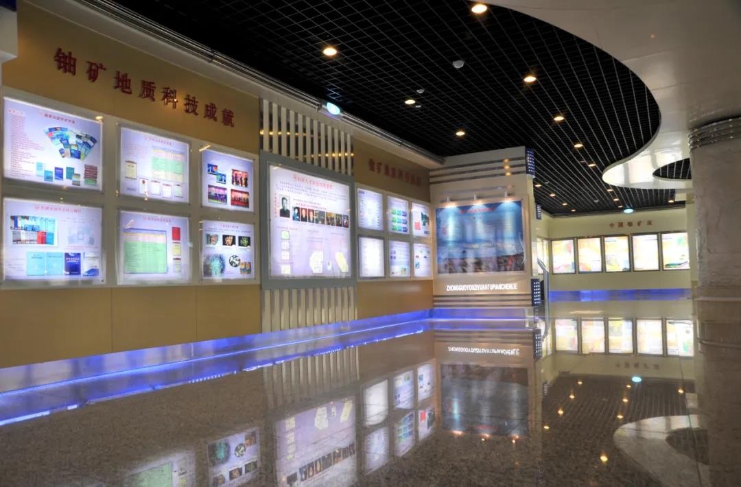 展區共分為9個部分,內容主要包括:鈾礦地質隊伍的創建與發展歷程,鈾資源在全國的分布情況,中國鈾成礦單元的劃分及相關介紹,大型鈾礦田的分布,中國已探明鈾礦床的類型及部分典型鈾礦床的特征,鈾礦地質勘查技術方法,取得的鈾礦地質科技成就及杰出的科研人才,廣泛的國際合作、技術交流以及世界大型鈾礦床的分布概況。