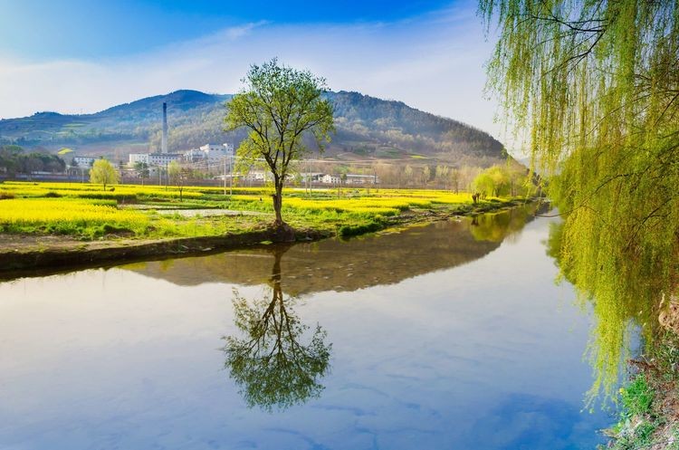 云悠悠,花燦燦,溢水河畔綠楊柳,月映春溪泛花舟。