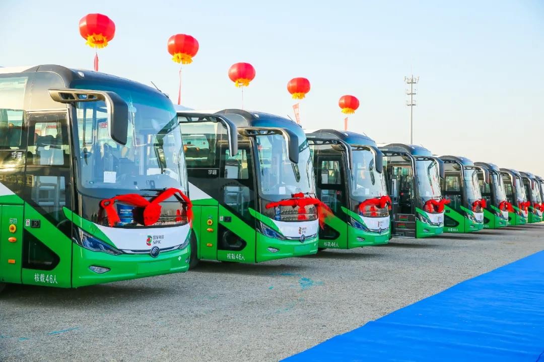 ▲搭載國家電投全自主研制“氫騰”燃料電池系統(tǒng)的宇通氫能大巴