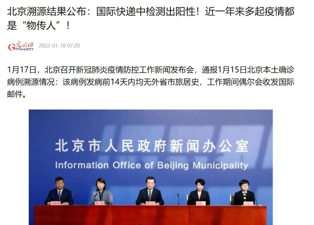 自天津爆發(fā)奧密克戎疫情以來,全國(guó)多地爆發(fā)疫情。1月15日,北京市海淀區(qū)接第三方檢測(cè)機(jī)構(gòu)報(bào)告一例新型冠狀病毒肺炎核酸檢測(cè)初篩陽性,根據(jù)北京召開新聞發(fā)布會(huì)通報(bào)該病例發(fā)病前14天內(nèi)均無外省市旅居史,工作期間偶爾會(huì)收發(fā)國(guó)際郵件,在國(guó)際快遞中檢測(cè)出陽性。