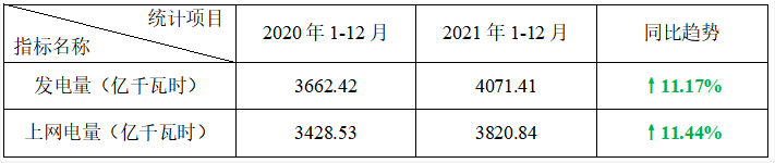表2:2021年1-12月核電電力生產(chǎn)指標(biāo)統(tǒng)計(jì)表