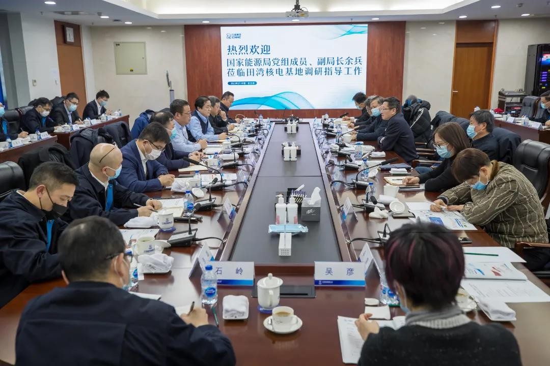 2月18日,國家能源局黨組成員、副局長余兵到田灣核電基地現場調研。中核集團黨組成員、副總經理申彥鋒,中核集團總經理助理、中國核電董事長、黨委書記盧鐵忠陪同調研。