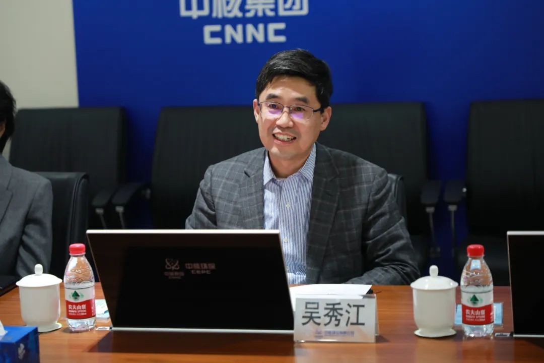中國核電董事會秘書、工會主席羅小未,中核環保黨委副書記、副總經理王英,中核環??倳嫀煛⒖偡深檰柡悟q及雙方相關業務部門負責人參加交流活動。