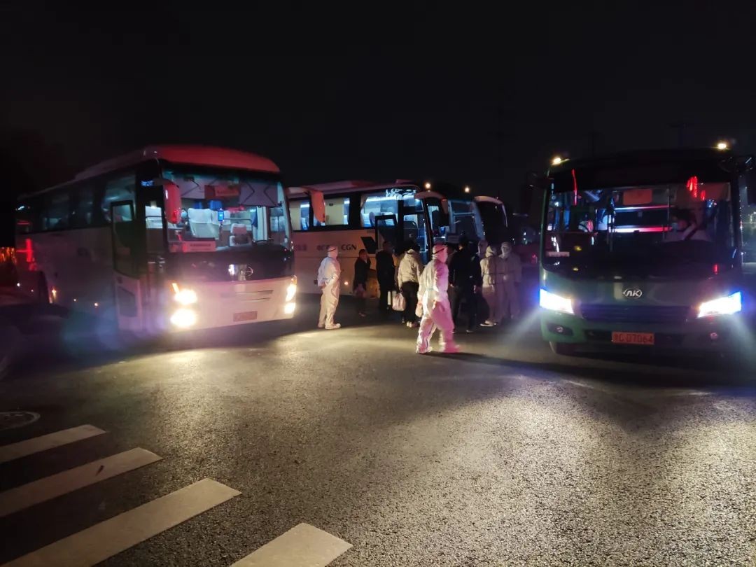 召之即來,來之能戰。3日20時,了解到防疫工作急需車輛援助,蒼南核電迅速整合本公司及中核華興、中建二局等參建單位全部可用車輛資源,僅用時30分鐘完成所有車輛集結,37輛全副武裝的大巴車“逆風出征”,于深夜22時抵達政府指定地點,義無反顧投身到抗疫戰斗中。4日凌晨1時,伴著點點星光,大巴車再次啟動,隔離轉運任務陸續開始執行,為避免人員交叉感染,車輛每次任務結束均進行消殺處理。