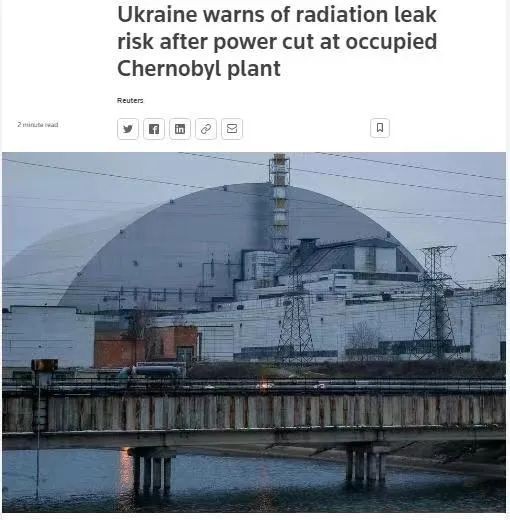 據(jù)路透社報道,烏克蘭國家核電公司表示,切爾諾貝利核電站可能會發(fā)生核泄漏,因為斷電后,該核電站無法冷卻用過的核燃料。