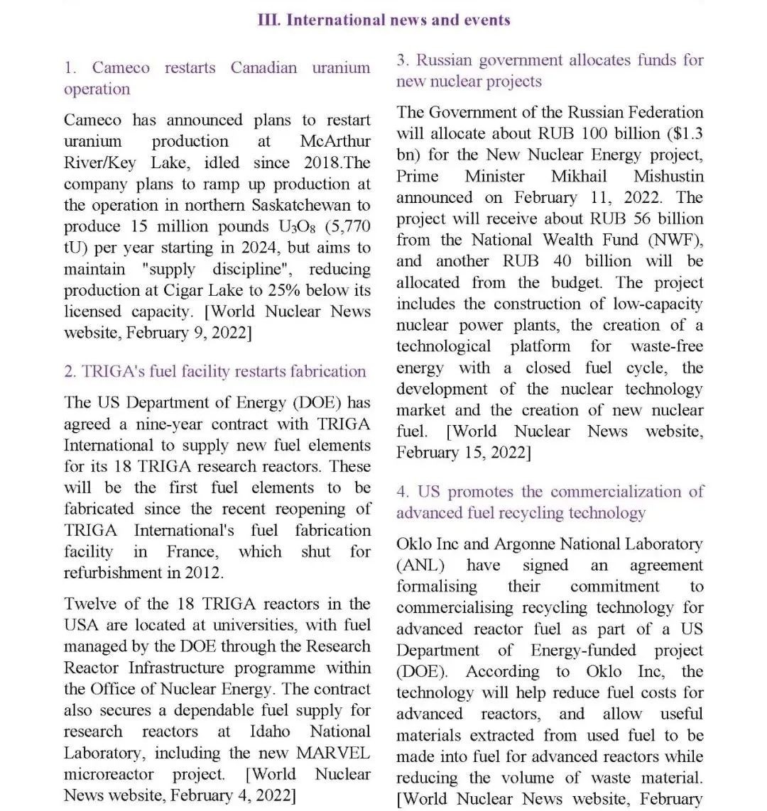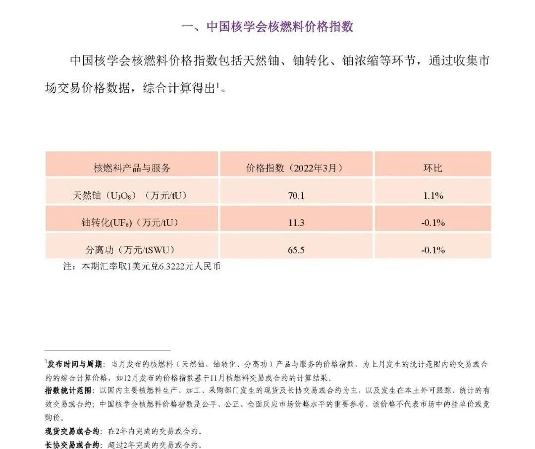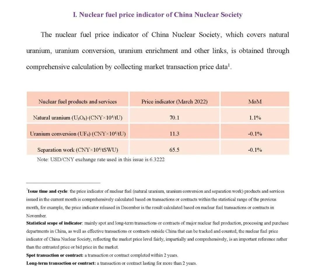 中國核學會核燃料價格指數(試運行)( 2022年3月,總第4期 )Nuclear Fuel PriceIndicator of Chinese Nuclear Society (Trial)March 2022 (No. 4)
