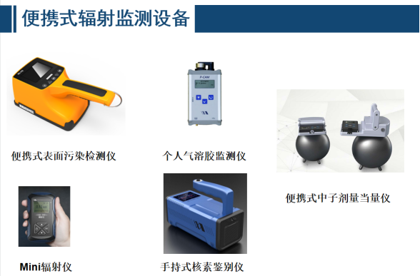 • 應急監測相關儀表 應急監測的主要目的是為確認或修改防護決策提供及時的信息,為此需要通過放射性物質測量,確定其位置和屬性。所用的儀器類型包括輻射監測設備、污染監測儀、空氣取樣器、劑量儀、γ譜儀、總 α、β 計數器、實驗室分析設備。監測方法包括地面監測、航空監測、個人監測、應急取樣及樣品分析等。