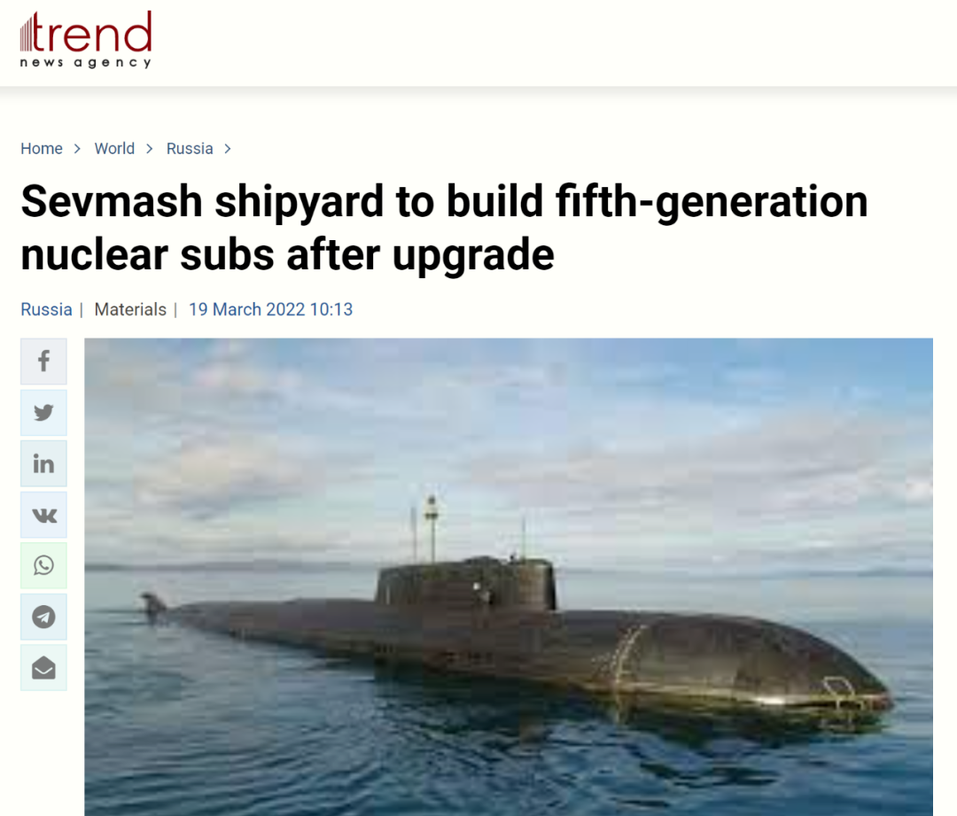 阿塞拜疆趨勢(shì)通訊社網(wǎng)站報(bào)道俄羅斯要建造第5代核潛艇
