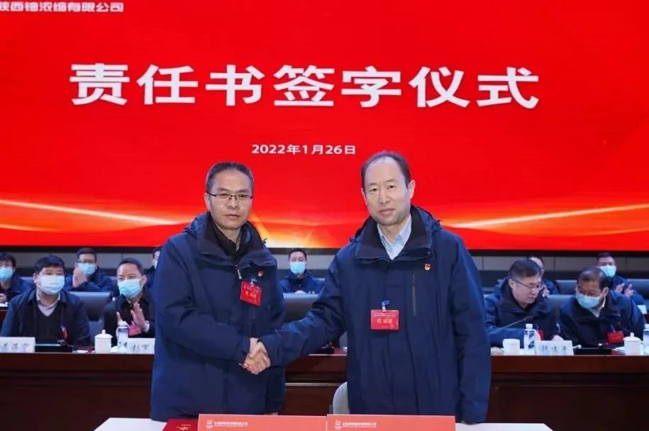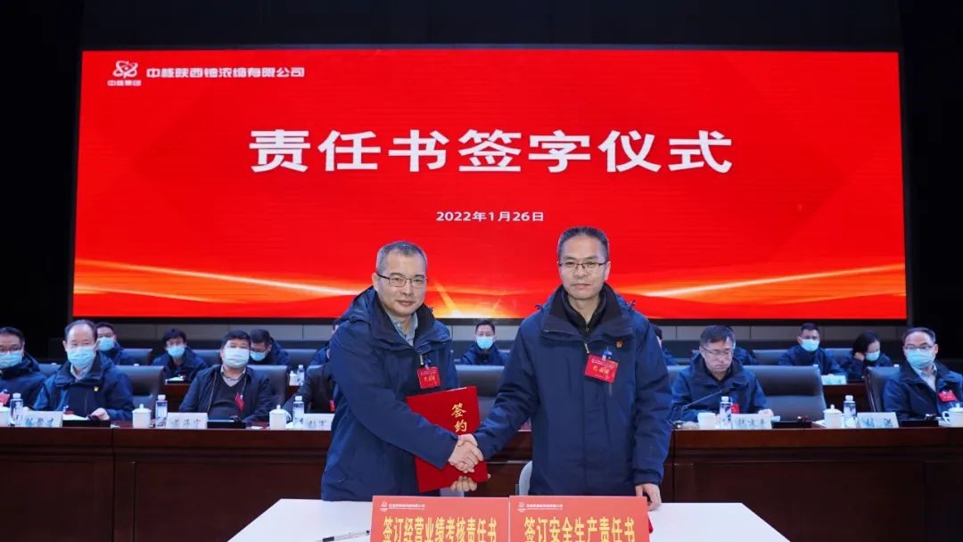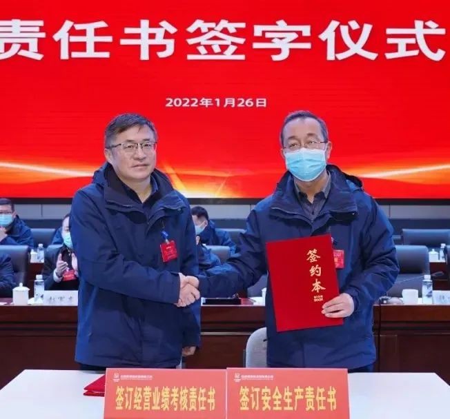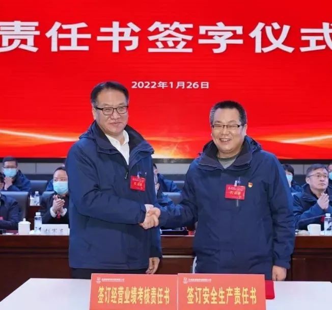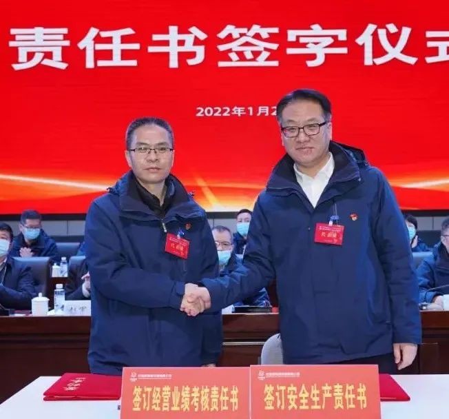 公司黨政主要領導分別與經理層成員、相關單位負責人簽訂2022年經營績效考核責任書、安全生產責任書