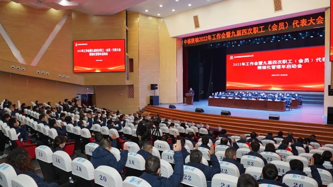 1月26日,中核陜鈾2022年工作會暨九屆四次職工(會員)代表大會、“精細化管理年”專項工作啟動會以“現場+直播”的形式召開。會議以習近平新時代中國特色社會主義思想為指導,深入貫徹落實習近平新時代中國特色社會主義思想,和黨的十九大及十九屆歷次全會精神,傳達貫徹落實中核集團和中國原子能年度工作會精神,總結工作、分析形勢,明確發展思路、部署重點工作,發布“精細化管理年”行動項,全力推動公司在新起點打開高質量發展新局面,以優異成績迎接黨的二十大勝利召開。會議由公司黨委委員、副總經理韓建平主持,地方政府領導及相關協作方負責人應邀出席會議,公司董事監事、退休老領導等通過視頻形式參加會議。