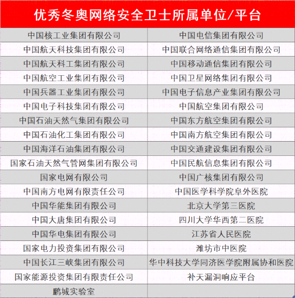 近日,冬奧網絡安全衛士總結表彰大會召開。來自國資委、國家衛健委以及中核集團等29家央企及鵬城實驗室等單位的“冬奧網絡安全衛士”憑借在冬奧會及冬殘奧會網絡安保工作中的突出貢獻獲得表彰。