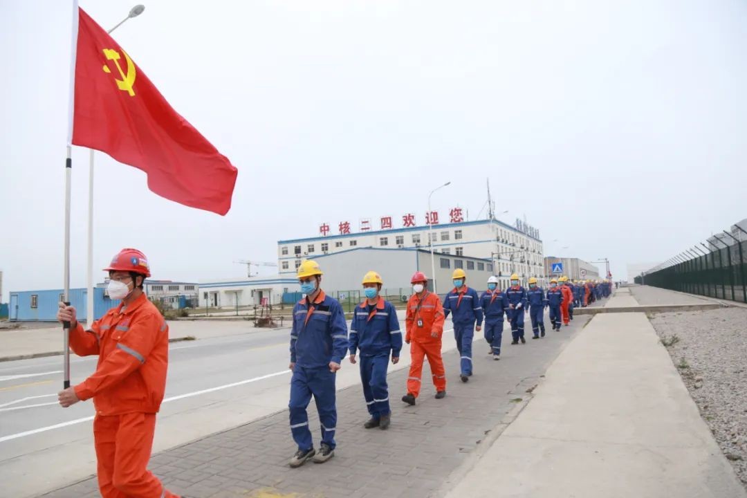 在華龍一號建設過程中,中核二四黨委充分發揮領導作用,進一步探索黨建與項目建設深度融合的新方法、新路徑,形成了黨建引領在前、建造熱火朝天、助力華龍加速騰飛的生動局面,讓黨旗在華龍一號施工現場高高飄揚。