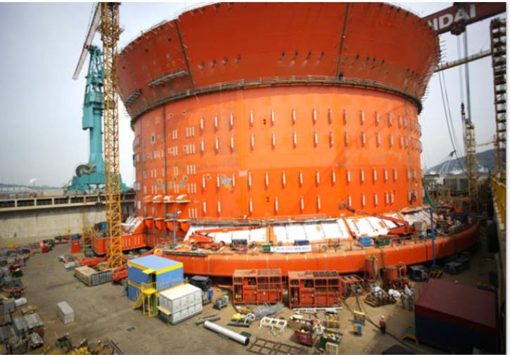 OFNP是一座海上超級核電站,它有110萬千瓦(使用AP1000成熟堆芯設(shè)計(jì))和30萬千瓦兩種版本,對應(yīng)的排水量分別為36.8萬噸和7.6萬噸。