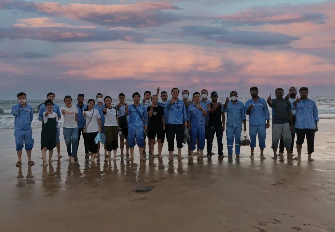 我們的膚色雖然不同,但我想真摯的情感應是相通的。我們和巴籍員工一起沙灘排球、一起摸魚抓蟹、一起打卡拍照……在緊張忙碌的工作之余度過了歡樂的一天。