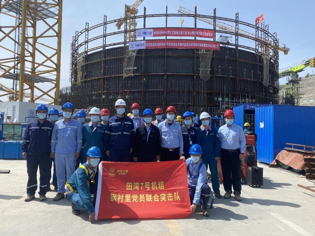 2022年4月23日,MAG焊技術在田灣核電7號機組安全殼鋼襯里第三層筒體正式使用,這是MAG焊技術在中核核電項目的率先應用,為后續鋼襯里焊接施工提供了新思路和新方法。