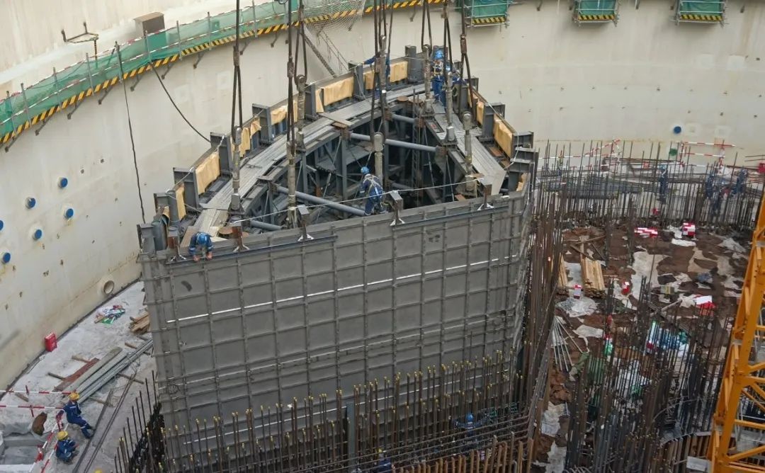 2022年4月28日17時28分,歷時2小時,非能動堆腔注水箱不銹鋼覆面模塊一吊裝就位,保證了后續(xù)反應堆廠房內(nèi)部結(jié)構(gòu)的連續(xù)施工。