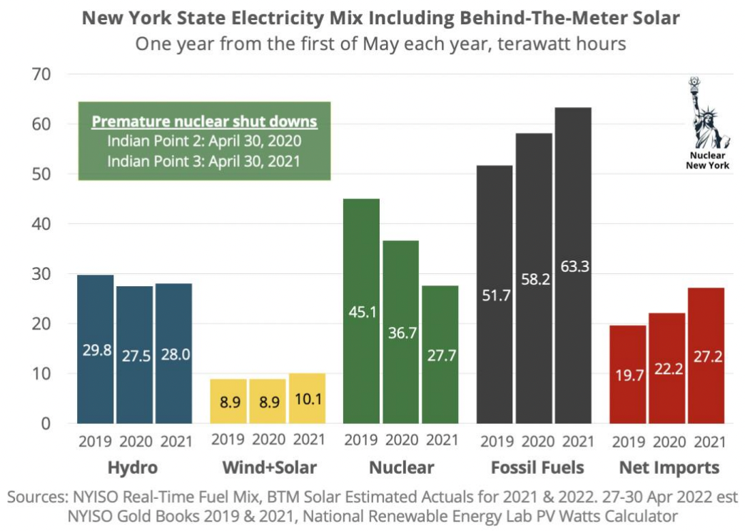 2022年4月30日是紐約提前關閉“Indian Point 3”核電機組一周年紀念日。多年來,紐約科莫政府和反核組織一直要求關閉紐約核電,聲稱其將被可再生能源和效率的進步所取代。但是,紐約獨立系統運營商(NYISO)電力監管機構的數據講述了一個截然不同的故事: