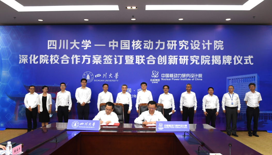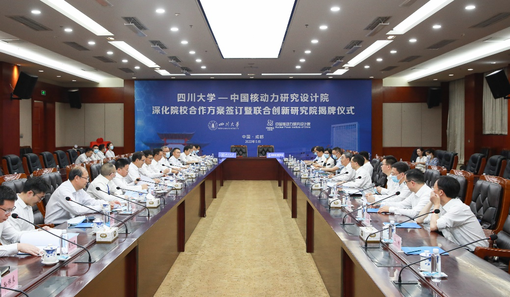 5月7日,中國核動力研究設計院與四川大學在成都舉行深化院校合作方案簽訂暨聯合創新研究院揭牌儀式。四川大學黨委書記王建國、副校長褚良銀,院黨委書記萬鋼、院長王叢林、顧問周定文及校院雙方相關單位負責人出席儀式,儀式由周定文主持。