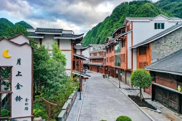 “月上金鈴•月下風情”民俗風情街項目以農業打底、以文化塑魂、以旅游賦能為指導思想,立足當地自然稟賦,著力促進農文旅產業融合發展。該項目實施后,金鈴場鎮由傳統農業集鎮向“農業+旅游配套服務”特色小鎮轉型,初步形成以場鎮核心區域及廣寒宮4A級景區為核心引擎,以金鈴路古街、民心街、土家民俗文化體驗園和公共服務配套設施等4個功能區為主要支撐,以月宮嫦娥打卡景點、國家級土家傳統村落、油罐溝探險、獐子巖、公母泉、紅軍洞紅色文化等8個景點為重要補充的同心多元產業架構。
