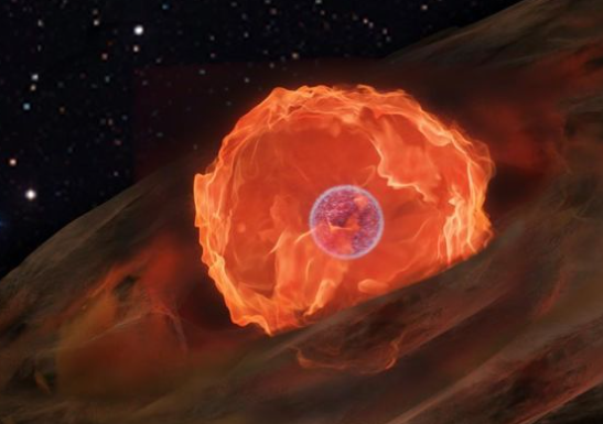 值得一提的是,這樣的爆炸不同于白矮星的La型超新星爆發,因為它并不會導致白矮星在爆炸中灰飛煙滅,但如果白矮星的質量到達了錢德拉上限(太陽質量的2.44倍)附近時,發生這樣的爆炸則有可能直接引發白矮星的La型超新星爆發,導致白矮星整個消失掉。