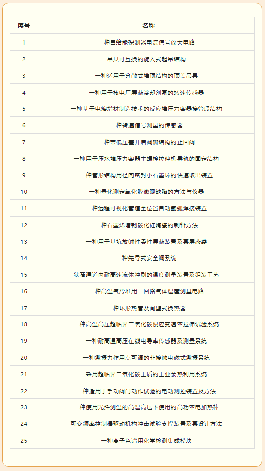 附件:核動力院25項技術成果清單