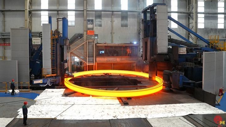 在制造現場,巨大的“乾坤圈”溫度高達1000多度,站在十幾米外都能感受到滾滾的熱浪。由于部件使用的奧氏體不銹鋼是一種特殊材質,熱態強度高,變形抗力大,非常難以加工,工程挑戰極大,代表了核電鍛件的最高制造難度。