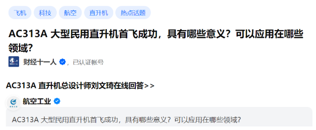 AC313A的成功首飛,標(biāo)志著研制工作將從試制階段轉(zhuǎn)入試飛階段,提升了我國航空應(yīng)急救援裝備自主可控能力和供給能力。