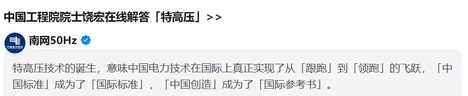 隨著研究深入,特大電流下的絕緣特性、電磁環(huán)境、設(shè)備研制、試驗(yàn)技術(shù)等一系列世界級(jí)技術(shù)難題橫亙在我們面前。幾年后,我們終于建成了世界上第一個(gè)±800千伏特高壓直流輸電工程——云廣特高壓直流工程。依托該工程,我們首次掌握了特高壓直流工程系統(tǒng)研究和集成核心技術(shù),形成特高壓直流工程自主化整體解決方案。特高壓技術(shù)的誕生,意味著中國電力技術(shù)在國際上真正實(shí)現(xiàn)了從“跟跑”到“領(lǐng)跑”的飛躍,“中國標(biāo)準(zhǔn)”成為了“國際標(biāo)準(zhǔn)”,“中國創(chuàng)造”成為了“國際參考書”。