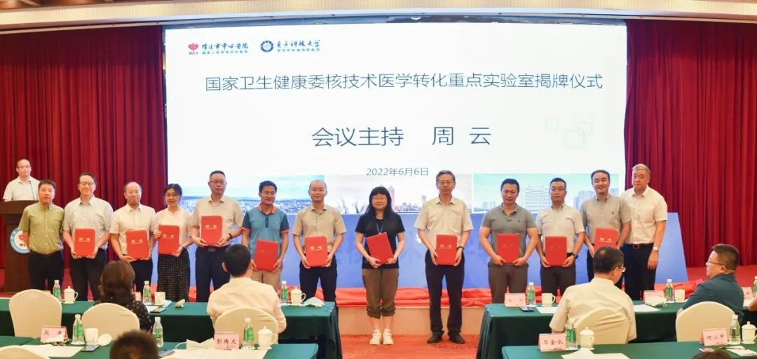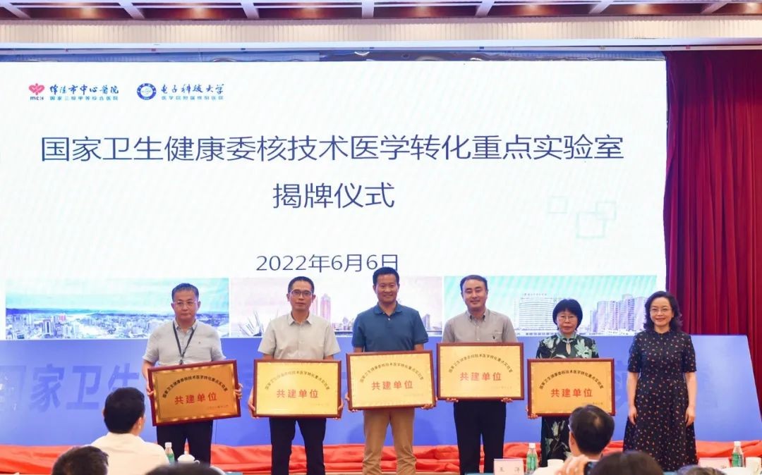 四川省衛健委副主任郭毅,四川省衛健委科教處處長彭博文,四川省衛健委科教處副處長張筱烽,綿陽市人民政府副市長蔣麗英、綿陽市人民政府副秘書長李曉林,綿陽市衛健委黨委書記、主任周云,四川大學華西基礎醫學與法醫學院副院長張舒羽、流體物理研究所,核物理與化學研究所,應用電子學研究所、西南科技大學相關領導及科研團隊,科學城醫院黨委書記薛培麗,綿陽市中心醫院黨委書記鮮于劍波、綿陽市中心醫院院長蔣濤及院班子成員參與了揭牌儀式。