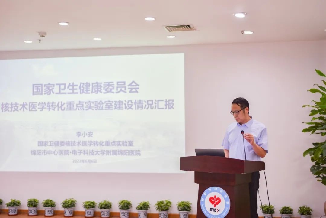 綿陽市中心醫院重點實驗室主任、科技科科長李小安從重點實驗室立項背景及過程、建設現狀、建設以來成果產出、3年目標規劃等方面對國家衛健委核技術醫學轉化重點實驗室建設情況進行了匯報。