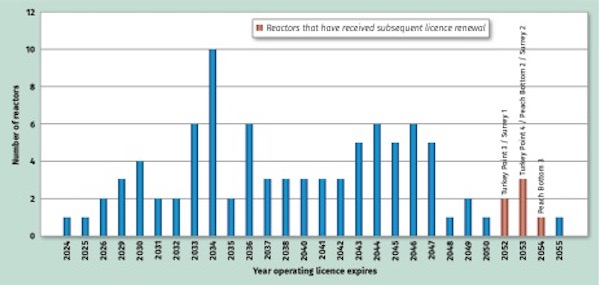 幾家業主將尋求第二次許可證續期,繼續運營核電站20年,但是有不到8年的時間準備和提交申請,并在美國NRC進行申請處理。