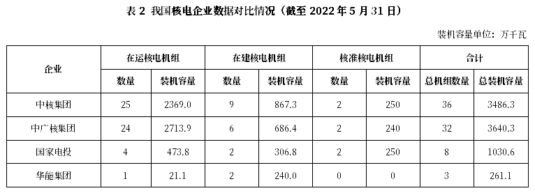 目前,我國(guó)具有控股運(yùn)行核電資質(zhì)的企業(yè)有中核集團(tuán)、中廣核集團(tuán)、國(guó)家電投和華能集團(tuán)等4家企業(yè)。