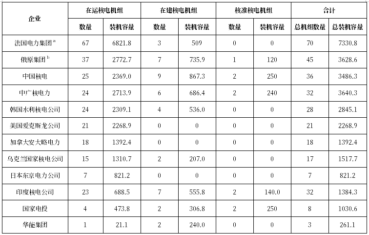 另外,我國(guó)以中核集團(tuán)和中廣核集團(tuán)為代表的核電企業(yè)已經(jīng)成為全球重要的核電企業(yè),在全球排名中占據(jù)重要位置。
