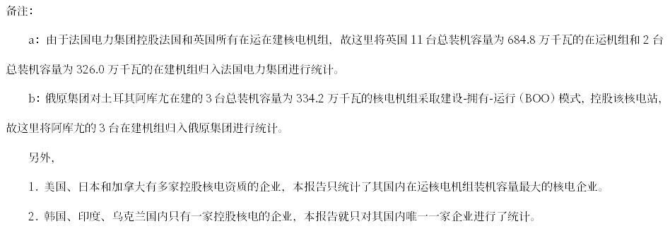 1:[ 雖然中廣核和國(guó)家電投對(duì)紅沿河核電站的控股比例為45%:45%,但是1-4號(hào)機(jī)組實(shí)際由中廣核控股,5-6號(hào)機(jī)組由國(guó)家電投控股,本報(bào)告按實(shí)際核電機(jī)組控股情況歸于兩家企業(yè)統(tǒng)計(jì)。]