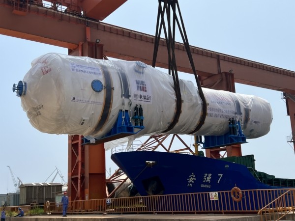 6月19日,位于秦皇島經濟技術開發區東區的哈電集團(秦皇島)重型裝備有限公司(以下簡稱“哈電重裝”)核島廠房里,一臺長約21米、重達370噸的“大家伙”被緩緩吊起,運至廠房外碼頭的貨船上,從當天起,此批共3臺“華龍一號”ZH-65型蒸汽發生器將陸續發往漳州核電廠。