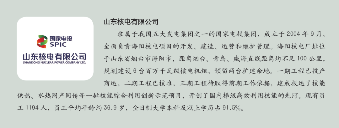 2021年8月,山東核電獲得省科技廳批復,牽頭組建了山東省首個核電領域技術研發(fā)中心山東省核電技術與安全技術創(chuàng)新中心以及煙臺市核能與核能綜合利用技術創(chuàng)新中心兩個省市級核電領域技術創(chuàng)新平臺,同年獲批籌建煙臺市核能綜合利用創(chuàng)新創(chuàng)業(yè)共同體。