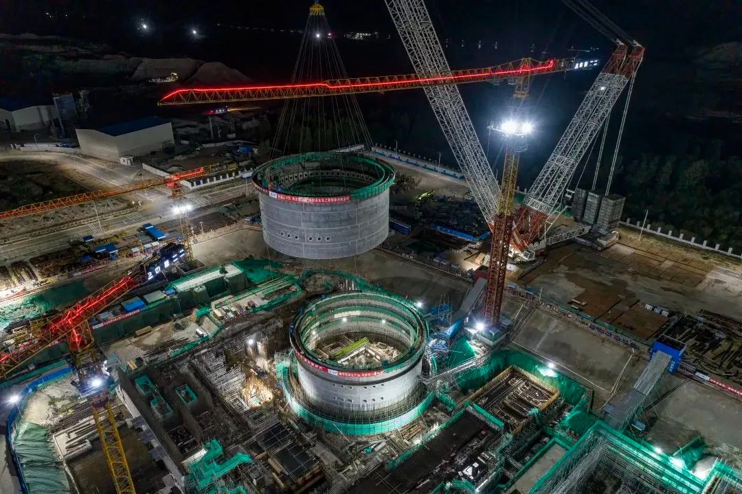 本次吊裝的鋼制安全殼上部筒體整體高度約15米,吊裝重量約720噸,是玲龍一號(hào)工程單次重量最大的一次吊裝。鋼制安全殼上部筒體整體由4層共32個(gè)瓣片拼裝而成,現(xiàn)場(chǎng)采用了工廠化制造、模塊化施工的先進(jìn)建設(shè)模式,優(yōu)化了現(xiàn)場(chǎng)施工邏輯,有效節(jié)約了現(xiàn)場(chǎng)施工工期,為反應(yīng)堆土建結(jié)構(gòu)與鋼結(jié)構(gòu)協(xié)同推進(jìn)創(chuàng)造了條件。