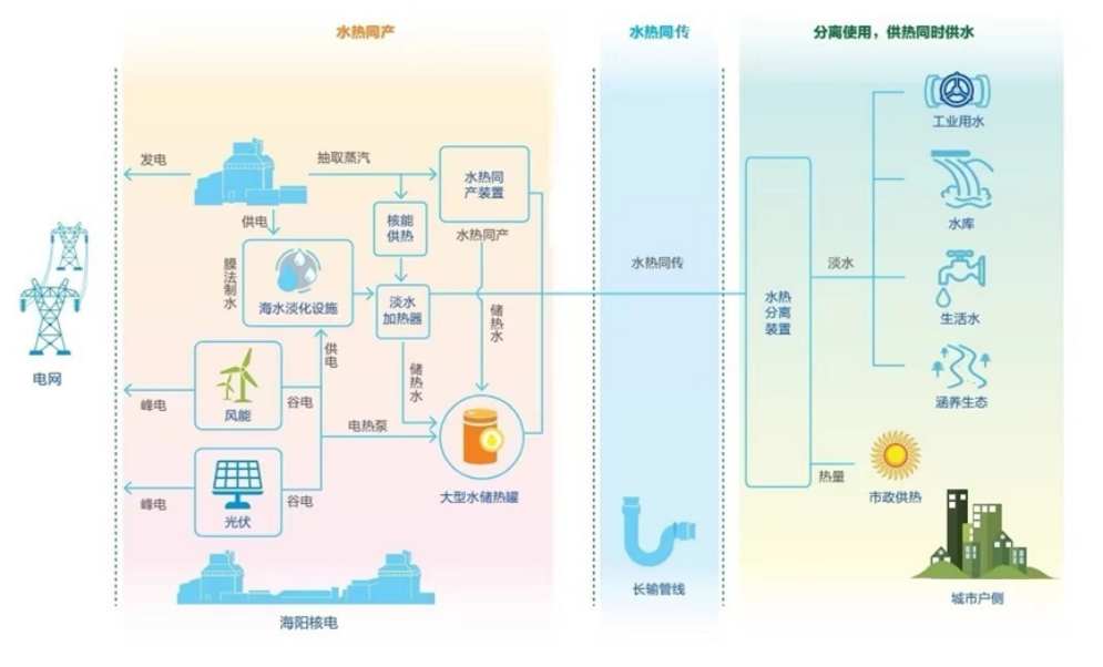 國(guó)家電投“核能+水熱同產(chǎn)同傳及綜合智慧能源”項(xiàng)目是《中華人民共和國(guó)國(guó)民經(jīng)濟(jì)和社會(huì)發(fā)展第十四個(gè)五年規(guī)劃和2035年遠(yuǎn)景目標(biāo)綱要》中“開(kāi)展山東海陽(yáng)等核能綜合利用示范”的重要組成部分。作為世界首個(gè)核能+水熱同傳項(xiàng)目,國(guó)家電投海陽(yáng)核電聯(lián)合清華大學(xué)等高校及設(shè)計(jì)研究院所,基于清華大學(xué)等研發(fā)的水熱同產(chǎn)專(zhuān)利技術(shù),共同研制成功并實(shí)施了世界首套水熱同產(chǎn)同傳系統(tǒng)。
