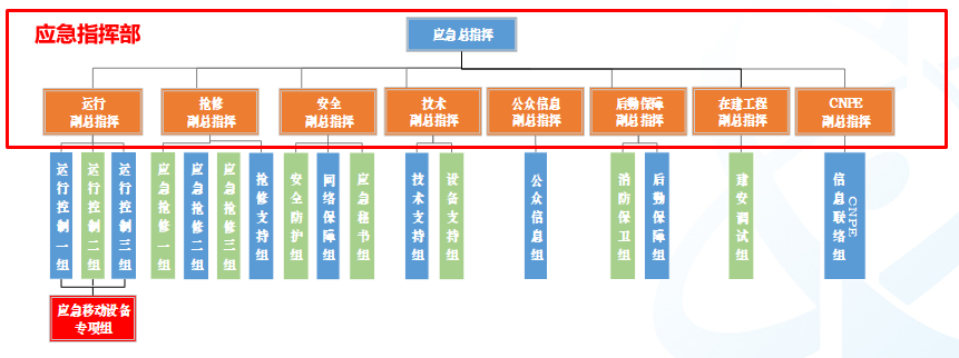 應急指揮部是電廠應急響應的“大腦”,它充分掌握電廠應急響應處置活動,并做出正確的指揮;各應急專業組是電廠應急響應的“四肢”,它們根據應急指揮部的指令開展應急響應活動。