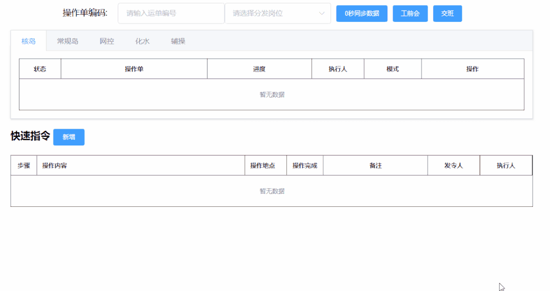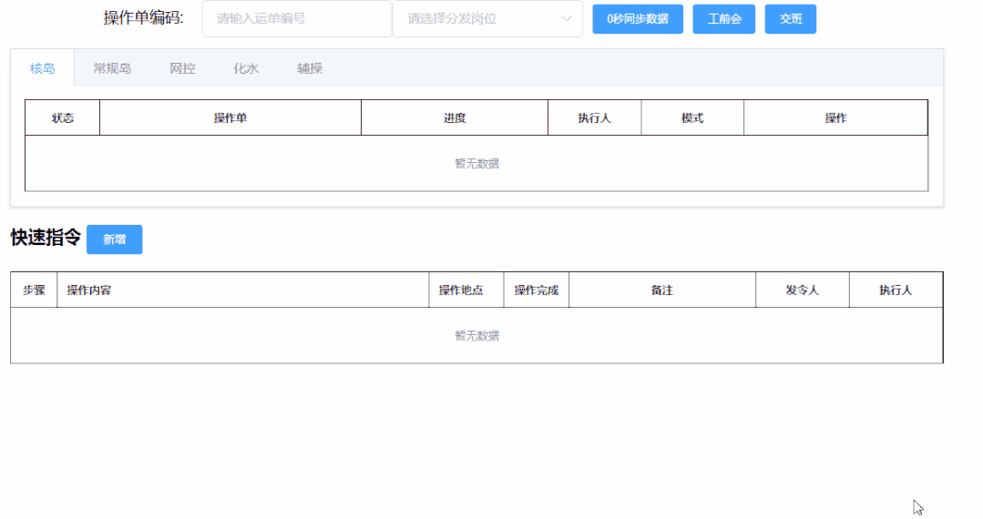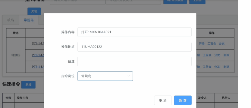快速指令模塊和臨時操作單編寫模塊分別用于單一指令和臨時操作單在線使用,實現操作指令的標準化,改變原有的電話下指令方式,大大降低人因失誤可能性。