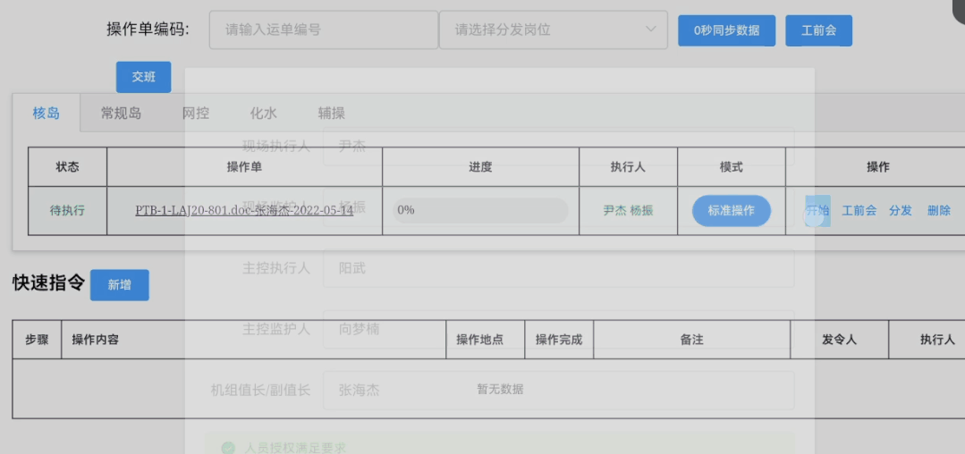 電子操作單支持在網絡終端使用,操作數據能夠實時回傳至主控室,支持三方(值長、操縱員、現場)數據共享;對操作單中的不執行項或選擇項,值長和操縱員可進行在線審批;僅需在線導出和提交兩步,即可完成操作單的派發、使用、歸檔流程。