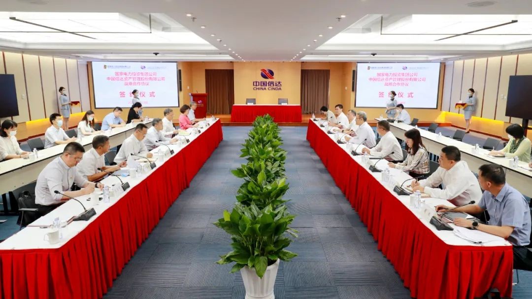 7月28日,在國家電投黨組書記、董事長錢智民和中國信達黨委書記張衛東的共同見證下,國家電投黨組成員、總會計師陳西與中國信達副總裁李洪江代表雙方簽署戰略合作協議,國家電投基金公司黨委書記、董事長王銳兵與中國信達戰略客戶一部總經理周理焱代表雙方簽署戰略合作項目備忘錄。