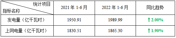 表2:2022年1-6月核電電力生產指標統計表