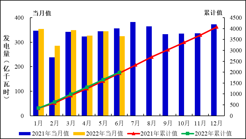 圖2:2021年1月至2022年6月全國運行核電機組發電量趨勢
