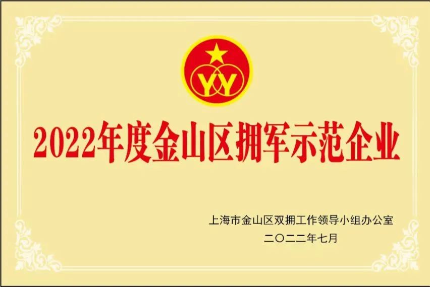 中核五公司獲得“2022年度金山區(qū)擁軍示范企業(yè)”稱號
