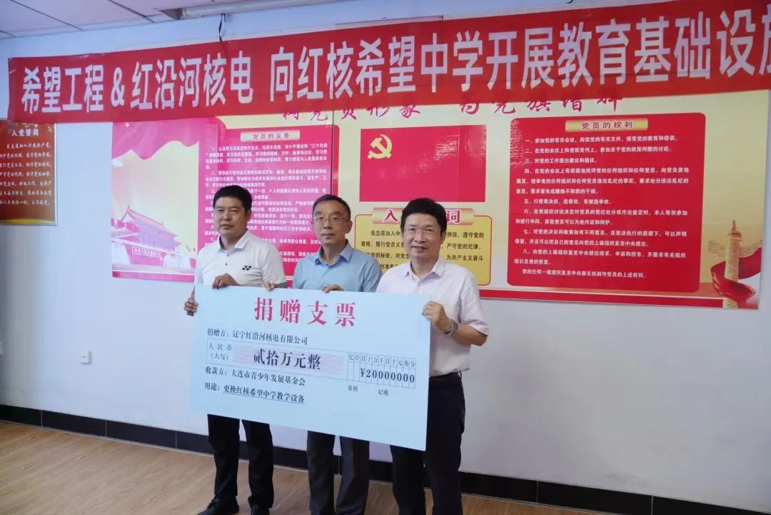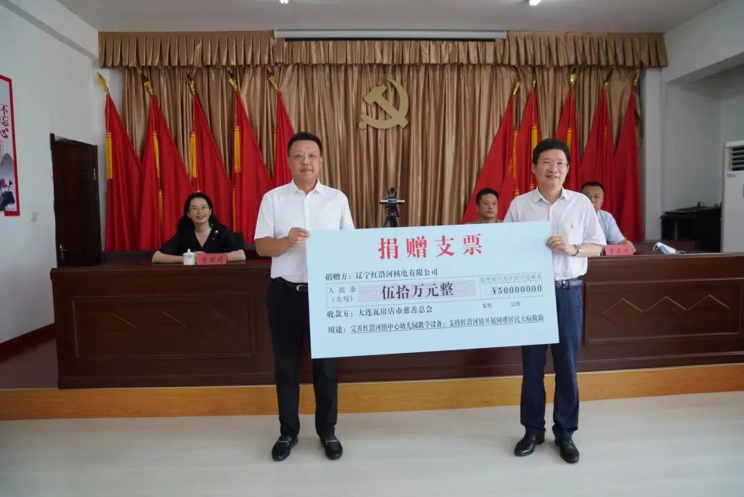 為積極履行企業社會責任,助力鄉村振興,8月2日上午,紅沿河公司分別通過瓦房店市慈善總會、大連市青少年發展基金會向紅沿河鎮政府、紅核希望中學捐贈70萬元人民幣,用于紅沿河鎮教育設施和教學設備改善以及困難居民大病救助。