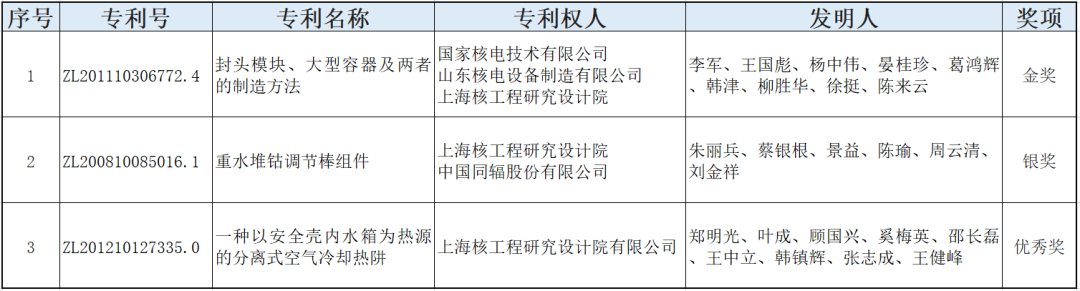 近日,國家知識產權局公布了關于第23屆中國專利獎授獎的決定,國家核電(上海核工院)獲得1項金獎、1項銀獎以及1項優秀獎,集團內首次實現中國專利金、銀獎的突破。